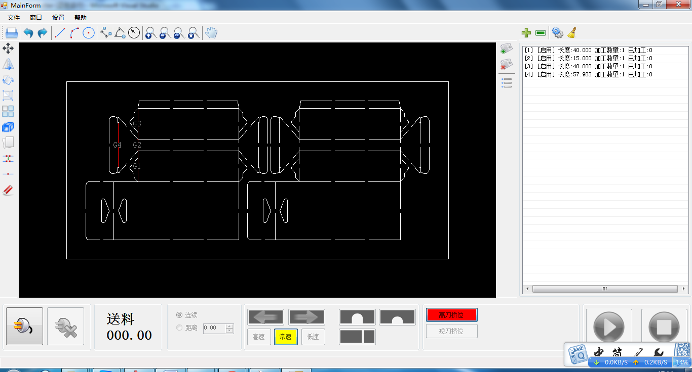 切线机控制系统,能够导入DXF,PLT,AI等图形文件,实现手动和自动图形分组,自动加工,操作简单方便.